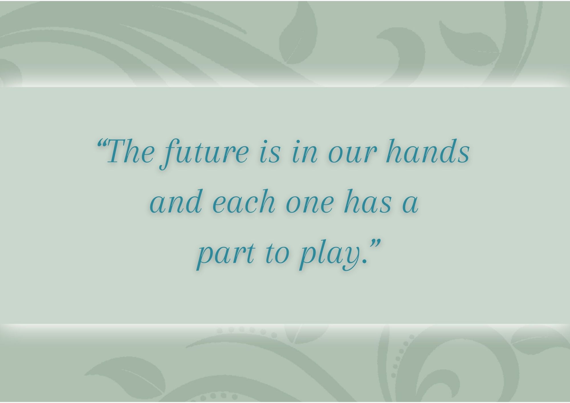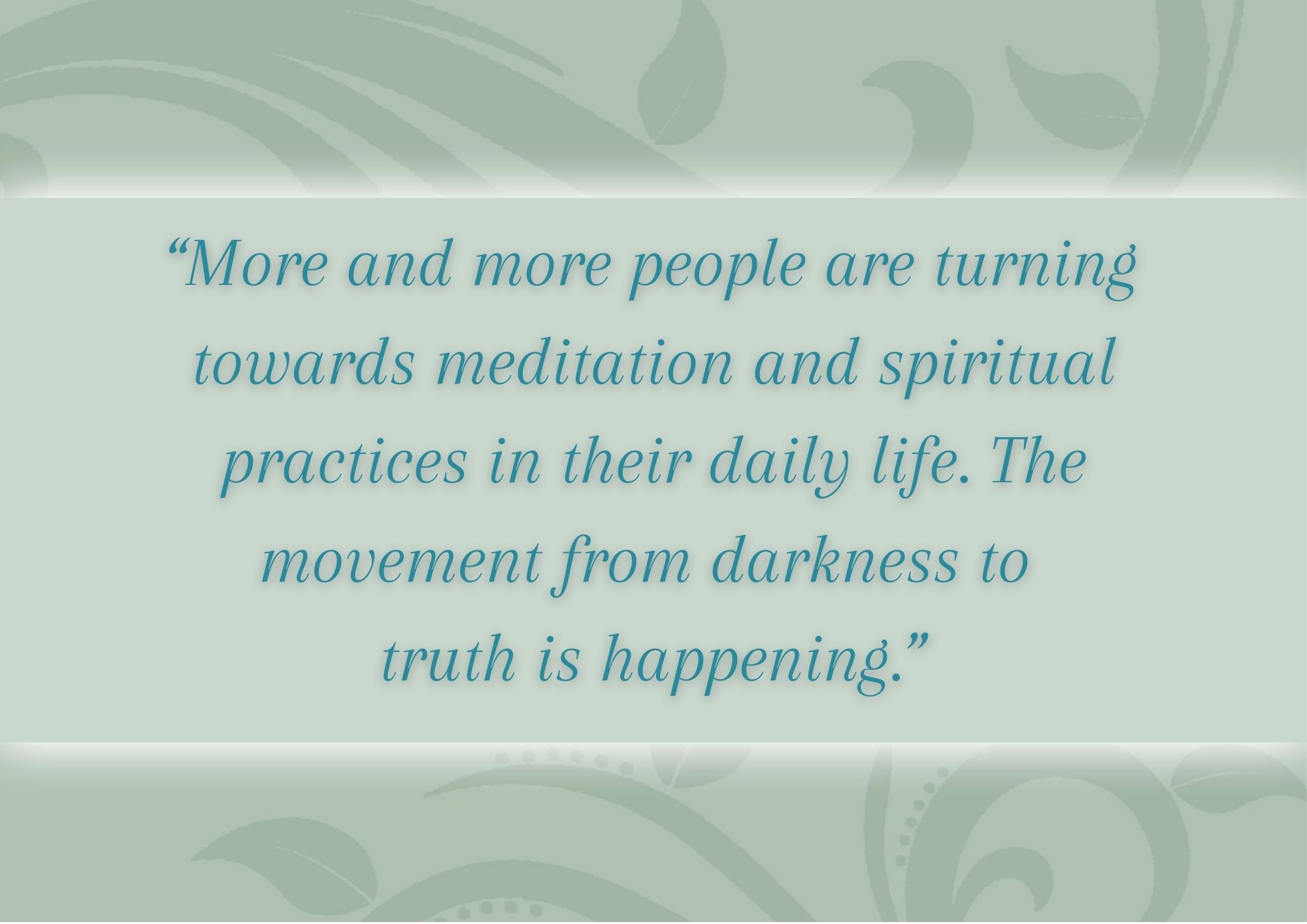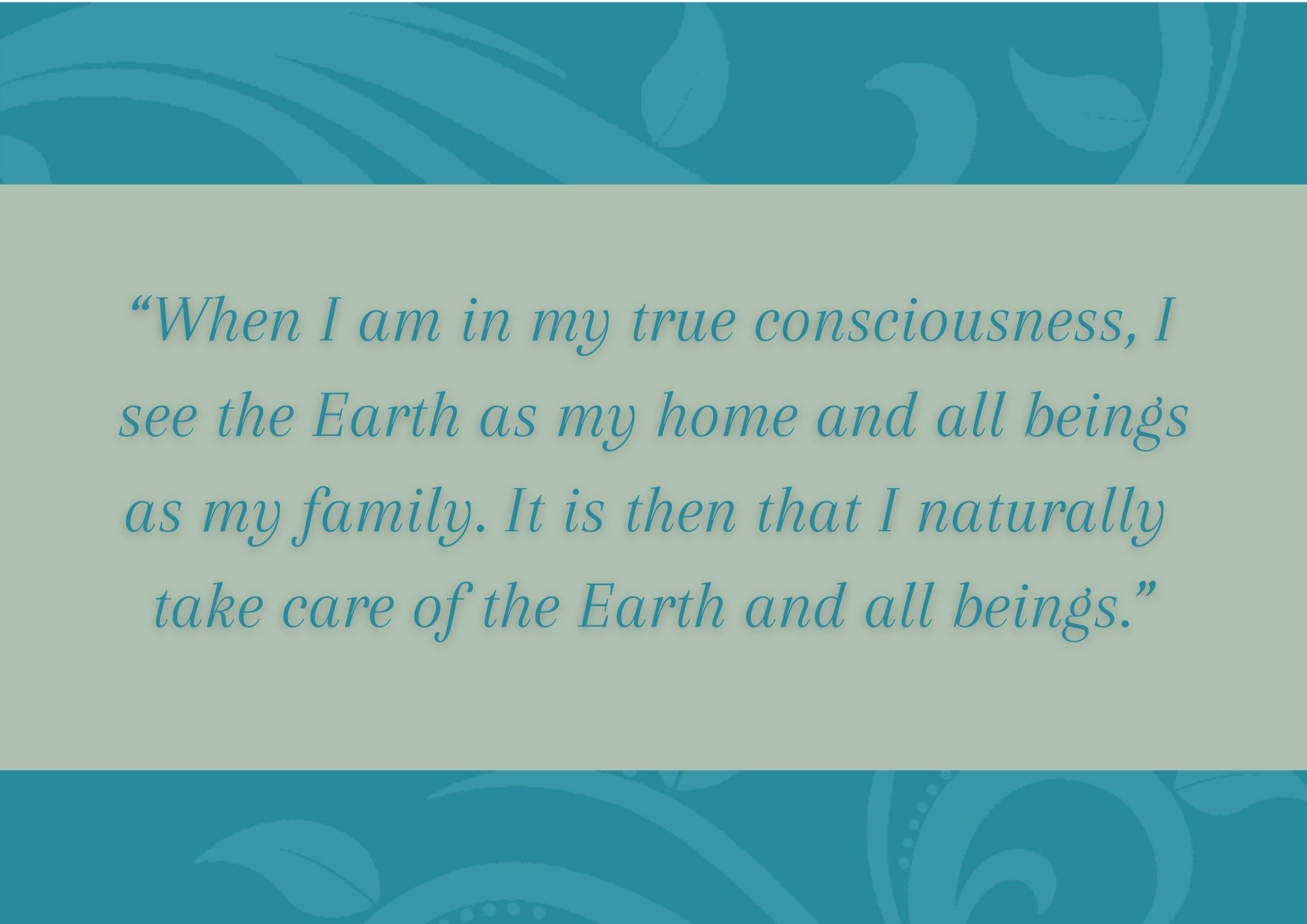 She shares a vision of a future world where living is anchored in universal spiritual principles and a shared sense of humanity.